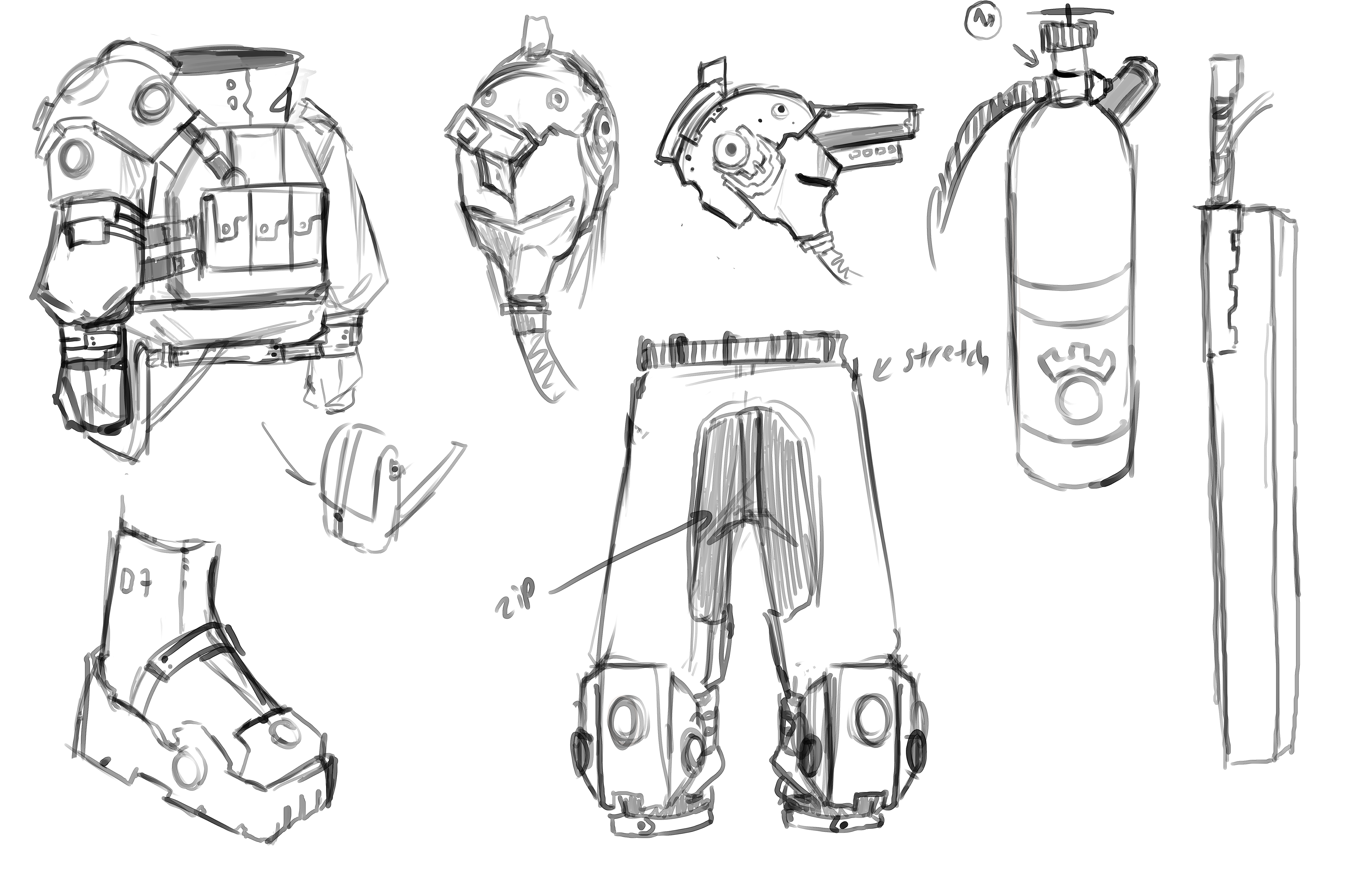 Character Design of a Mercenary in a post-industrial dystopian setting.